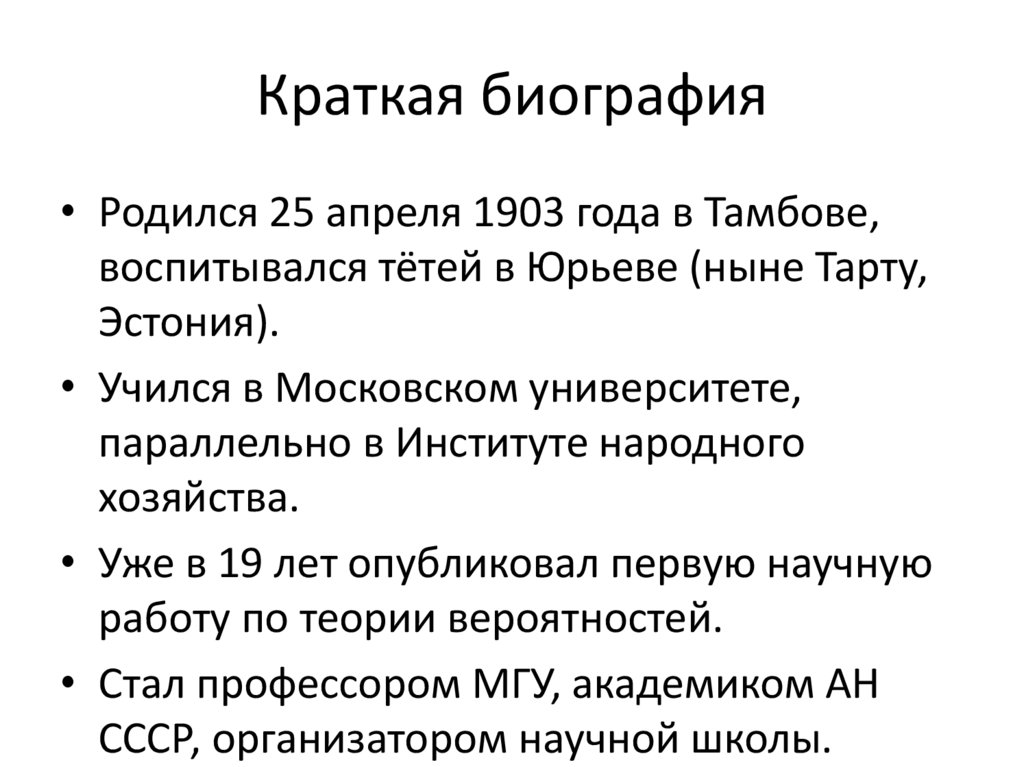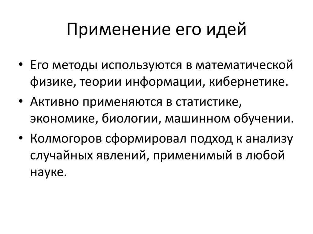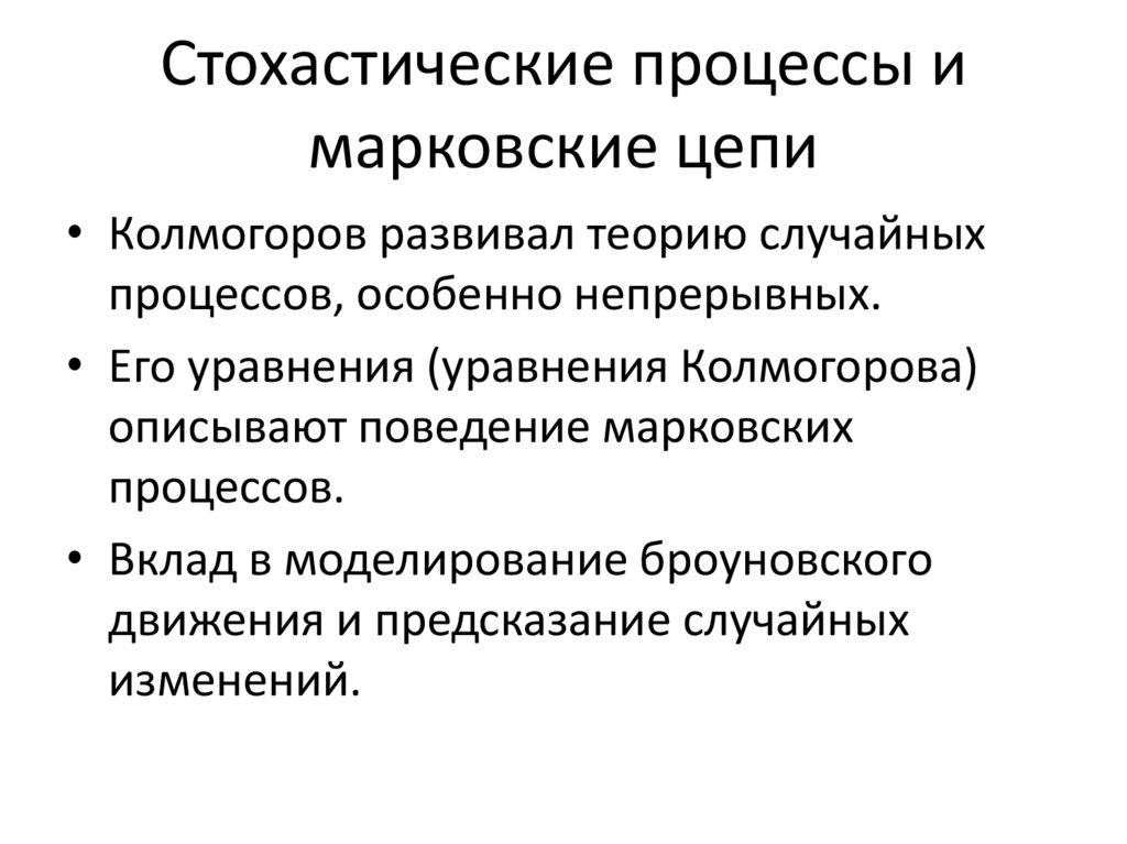 • Колмогоров развивал теорию случайных