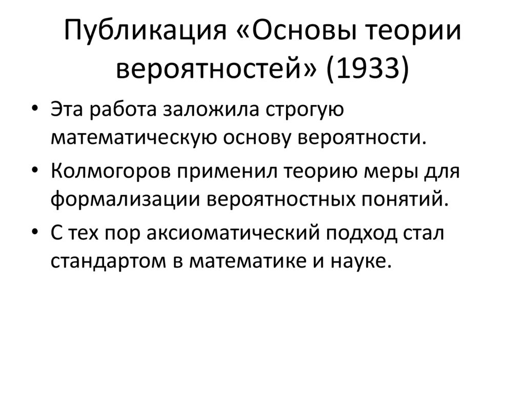 Публикация «Основы теориивероятностей» (1933)