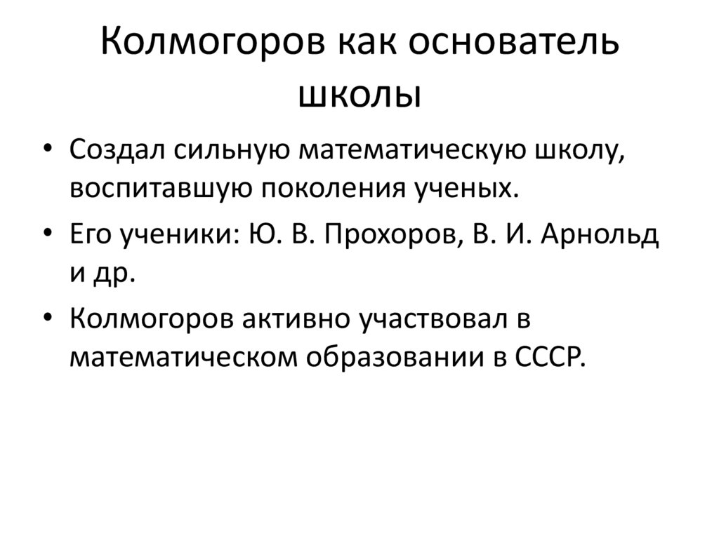 Колмогоров как основательшколы