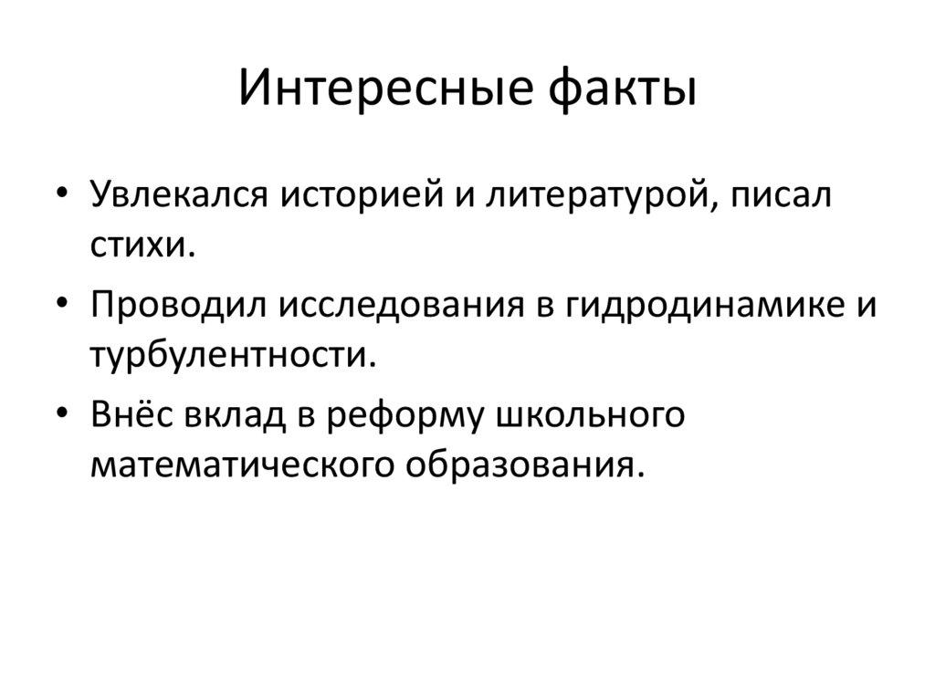 Интересные факты• Увлекался историей и литературой, писал