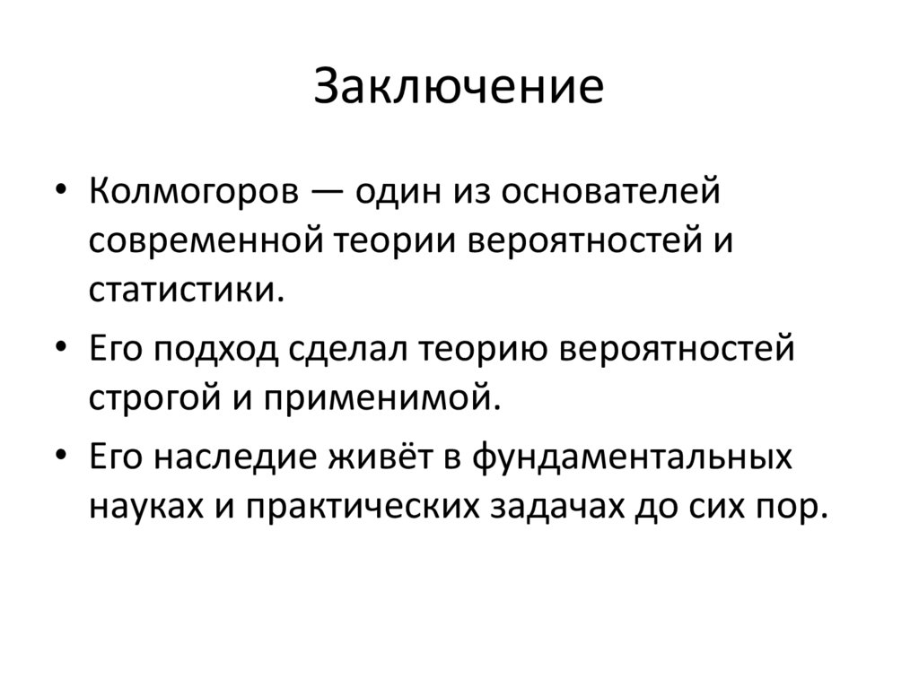 Заключение• Колмогоров — один из основателей