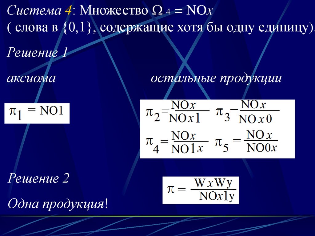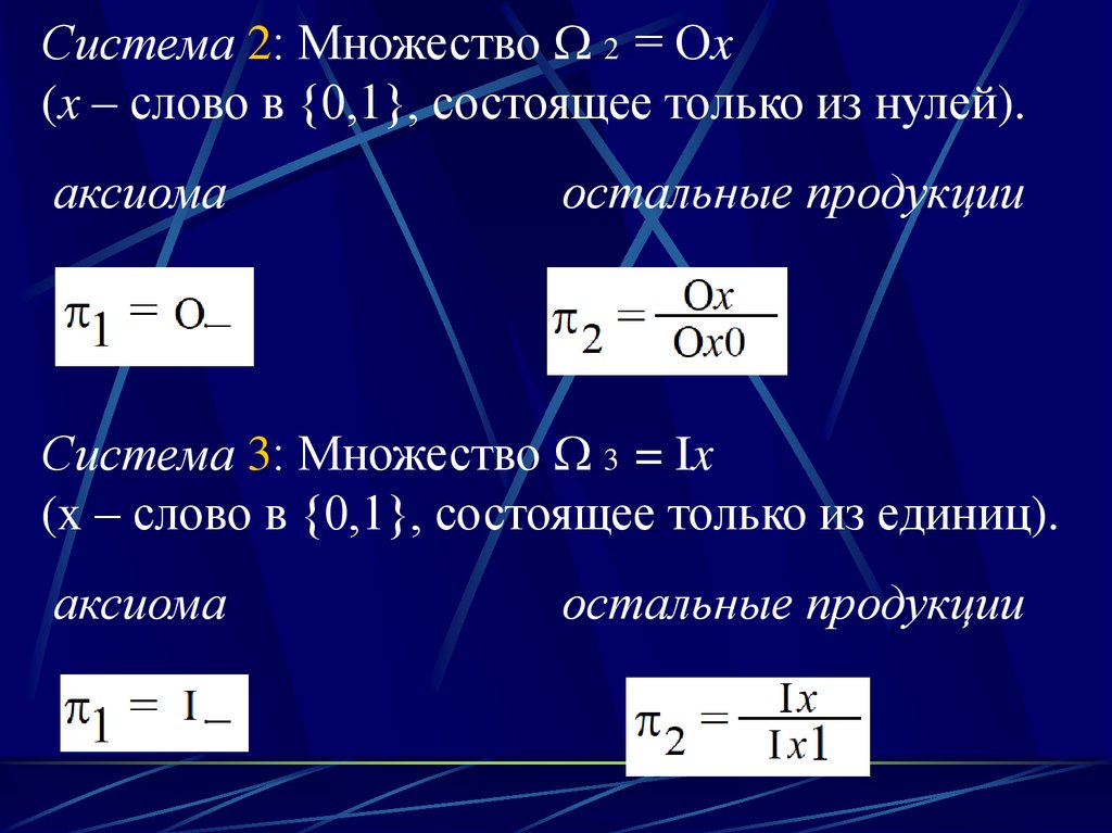 Система 2: Множество 2 = Оx(x – слово в {0,1}, состоящее только из нулей).