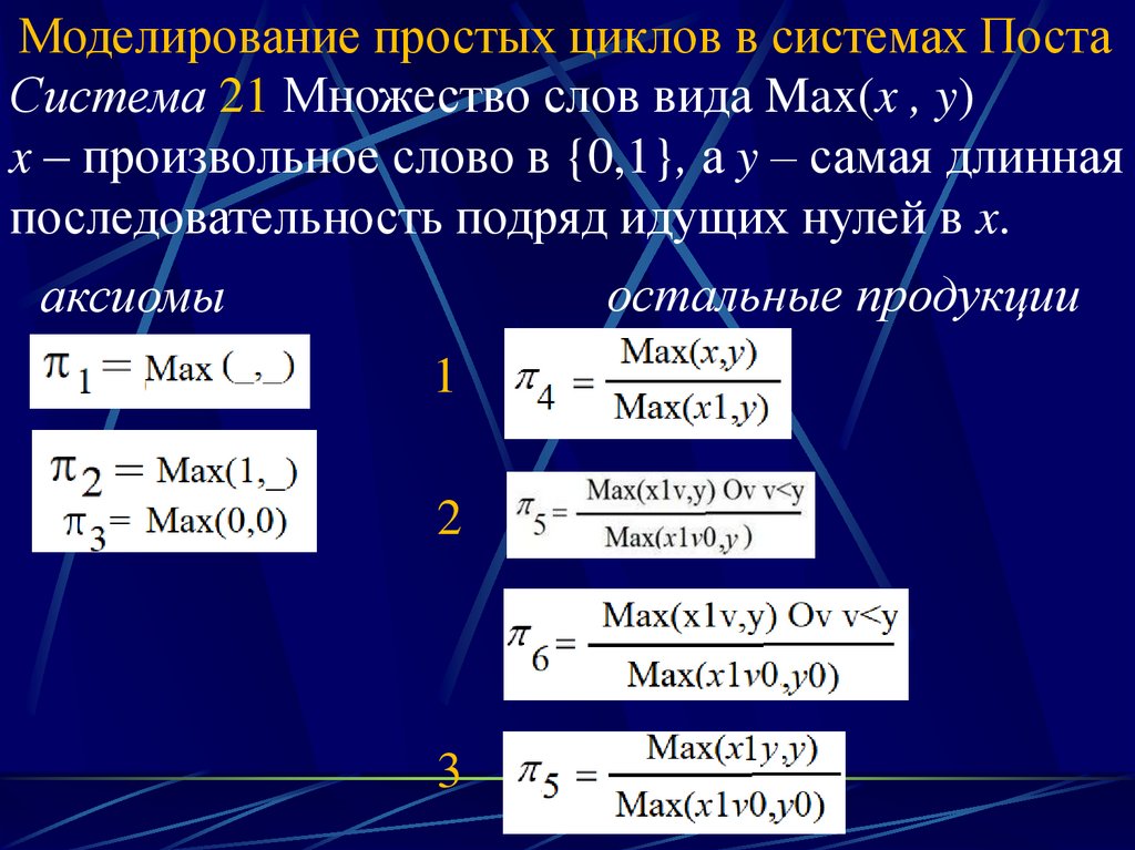 Моделирование простых циклов в системах ПостаСистема 21 Множество слов вида Max(x , y)