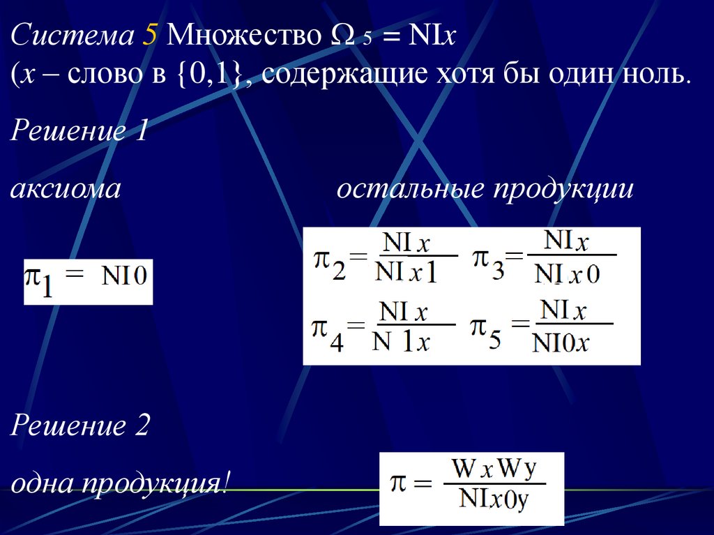 Система 5 Множество 5 = NIx(x – слово в {0,1}, содержащие хотя бы один ноль.