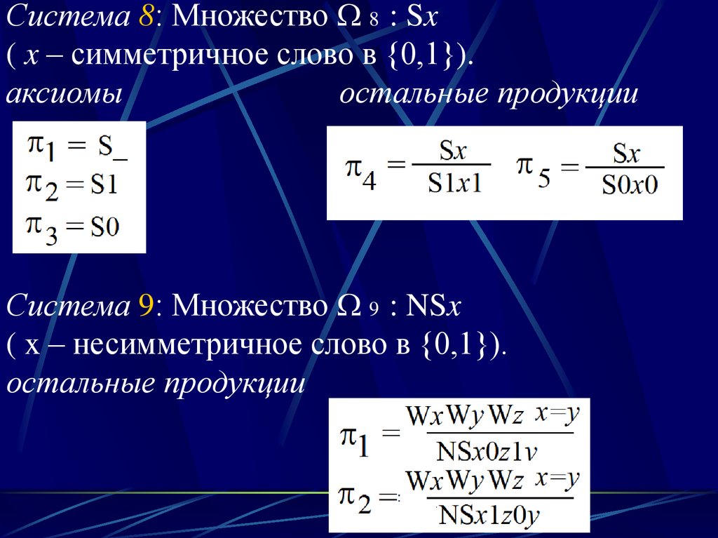 Система 8: Множество 8 : Sx( x – симметричное слово в {0,1}).