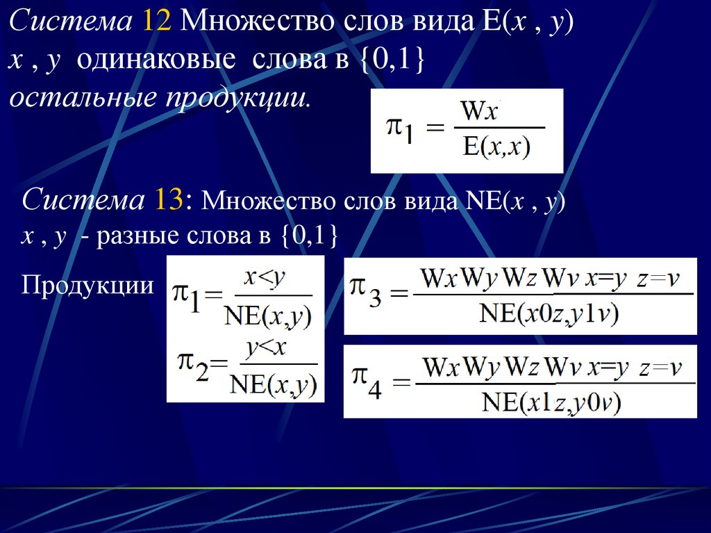 Система 12 Множество слов вида E(x , y)x , y одинаковые слова в {0,1}