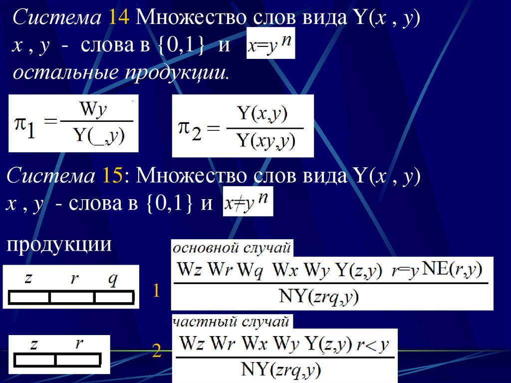 Система 14 Множество слов вида Y(x , y)x , y - слова в {0,1} и