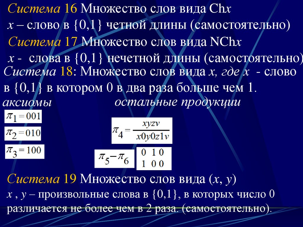 Система 16 Множество слов вида Chxx – cлово в {0,1} четной длины (самостоятельно)