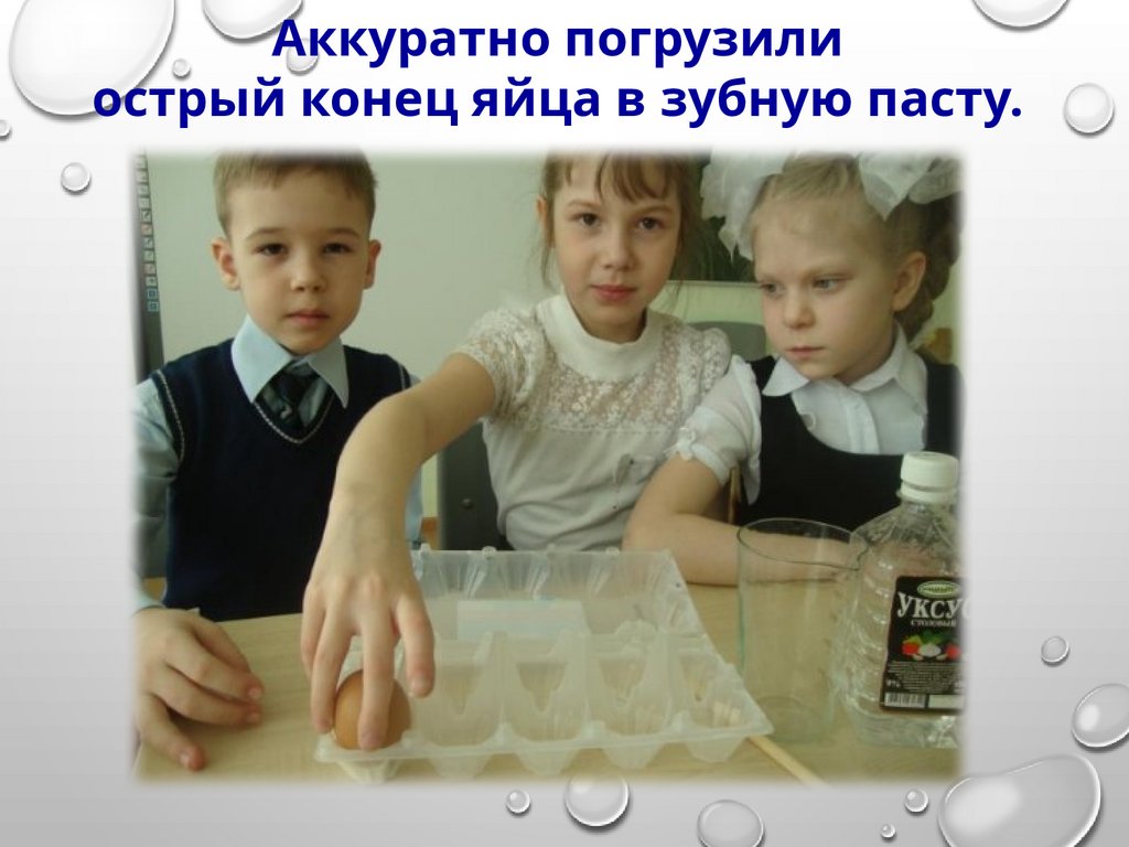 Аккуратно погрузилиострый конец яйца в зубную пасту.