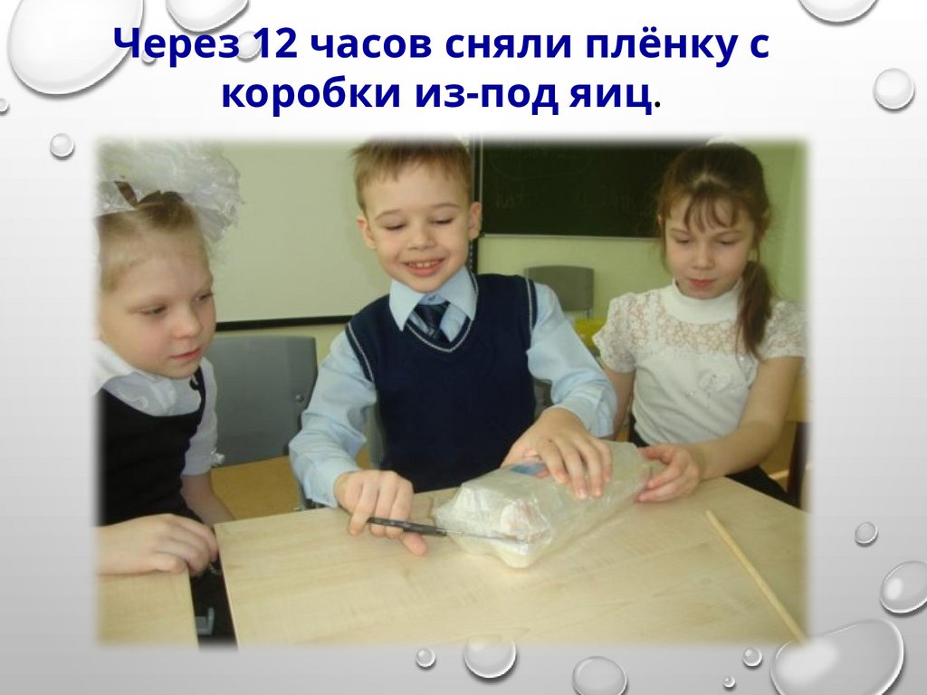 Через 12 часов сняли плёнку скоробки из-под яиц.