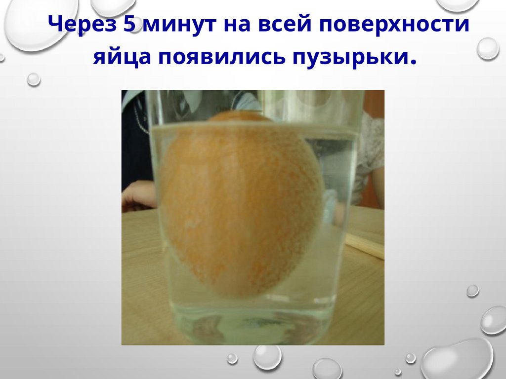 Через 5 минут на всей поверхностияйца появились пузырьки.