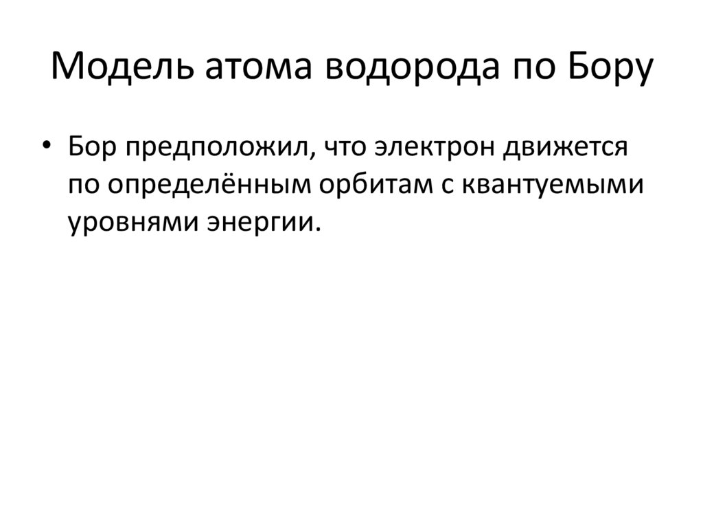 Модель атома водорода по Бору• Бор предположил, что электрон движется