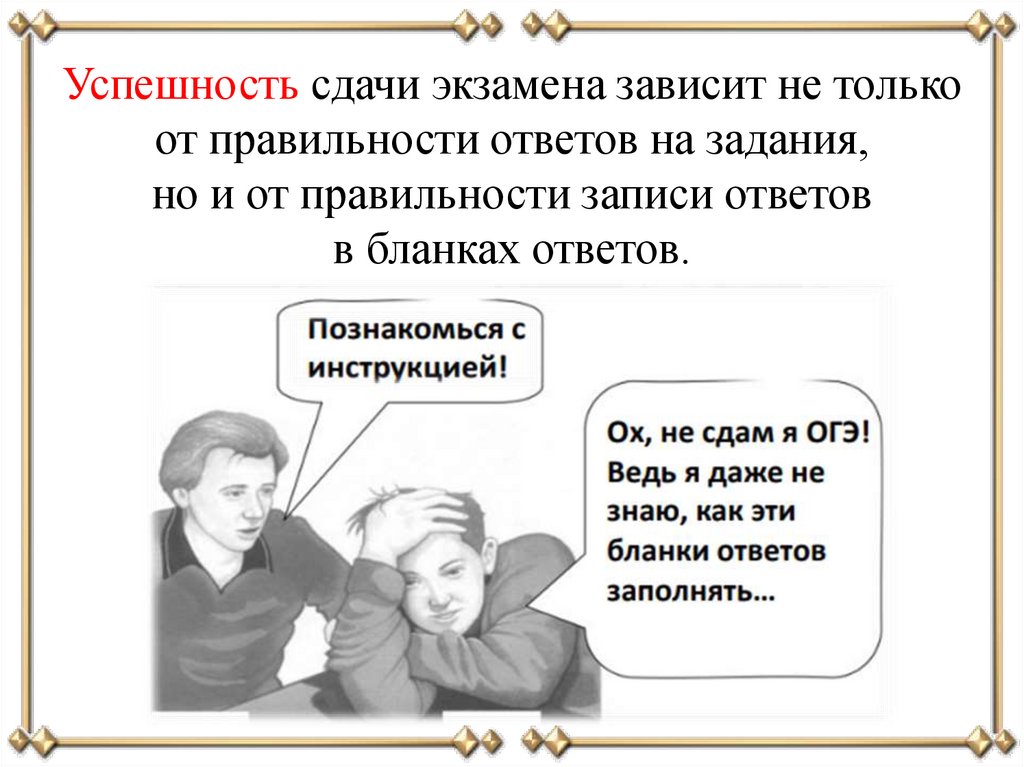 Успешность сдачи экзамена зависит не толькоот правильности ответов на задания,