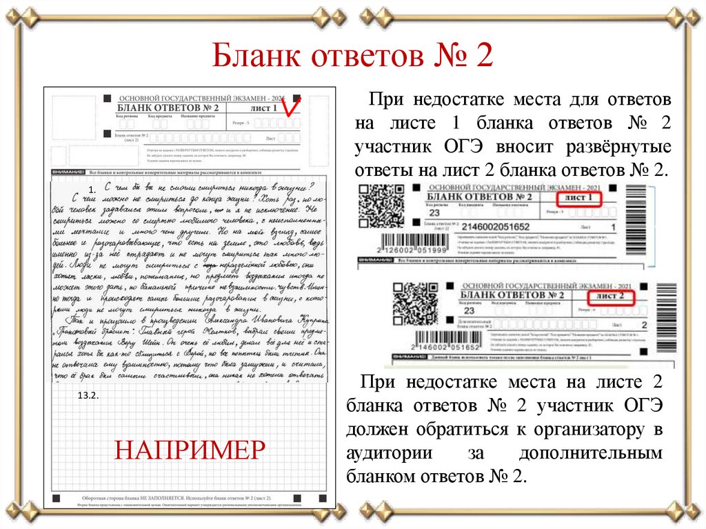 Бланк ответов № 2Бланк ответов № 2 предназначен для