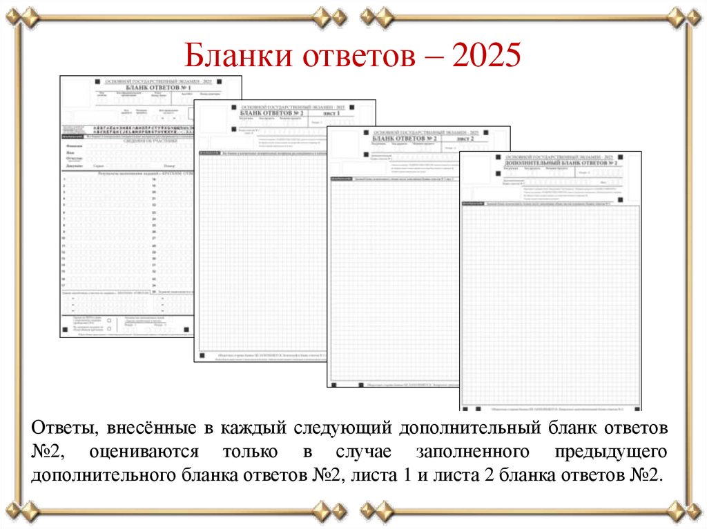 Бланки ответов – 2025Ответы, внесённые в каждый следующий дополнительный бланк ответов