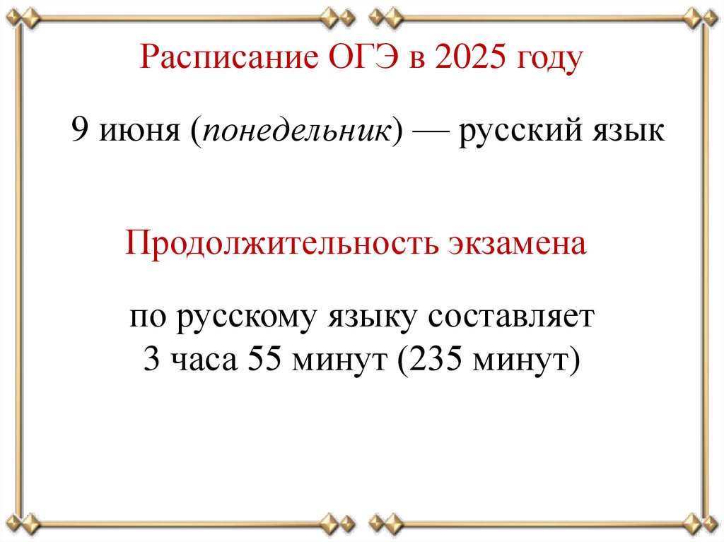 Расписание ОГЭ в 2025 году9 июня (понедельник) — русский язык