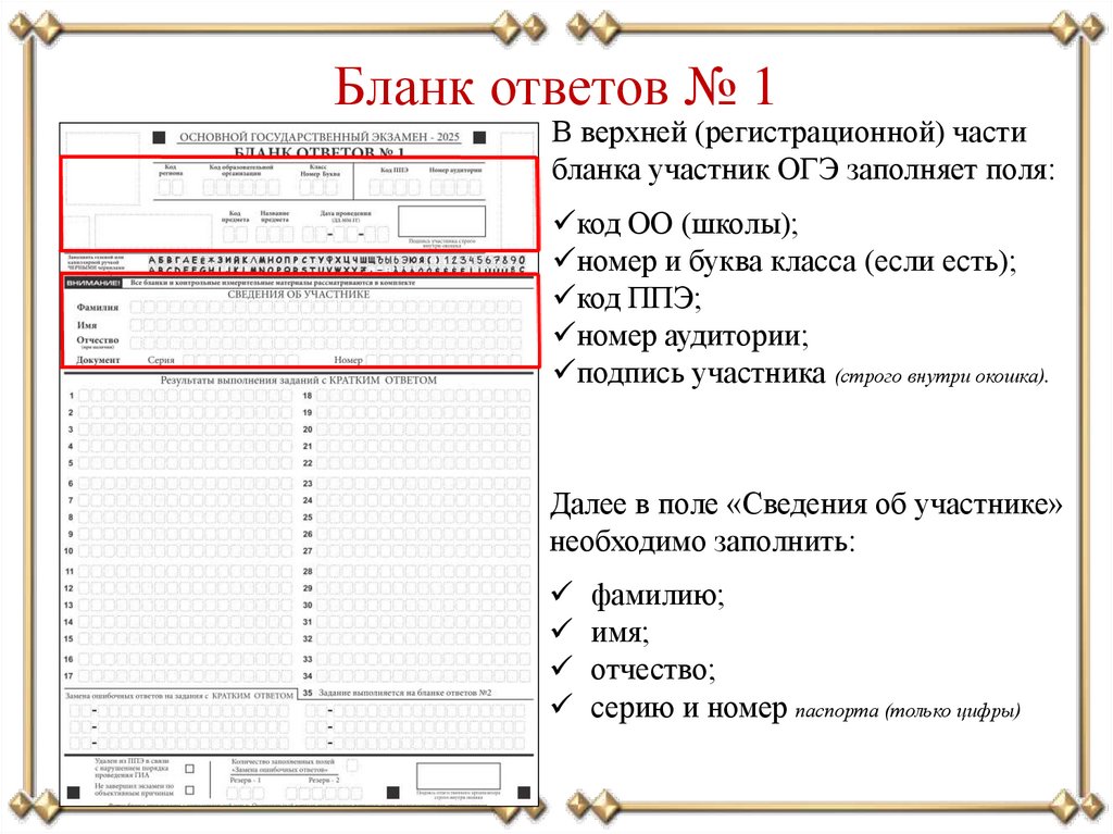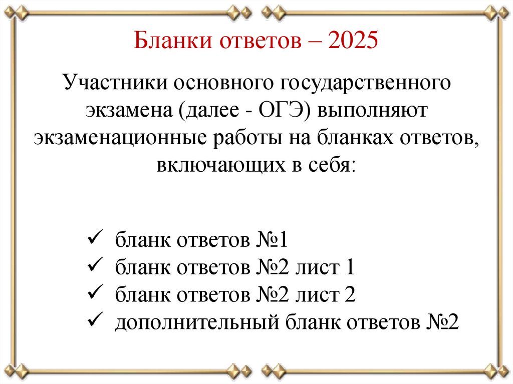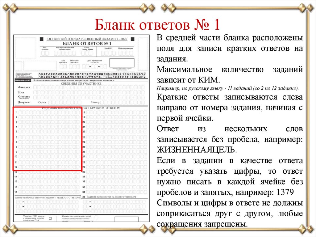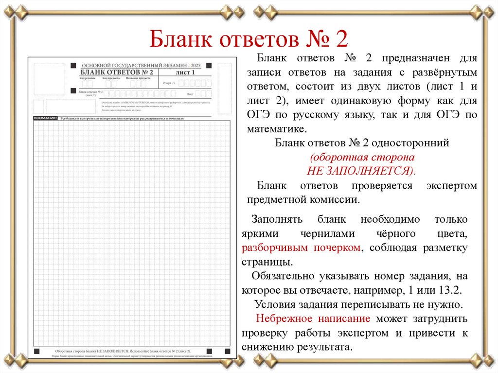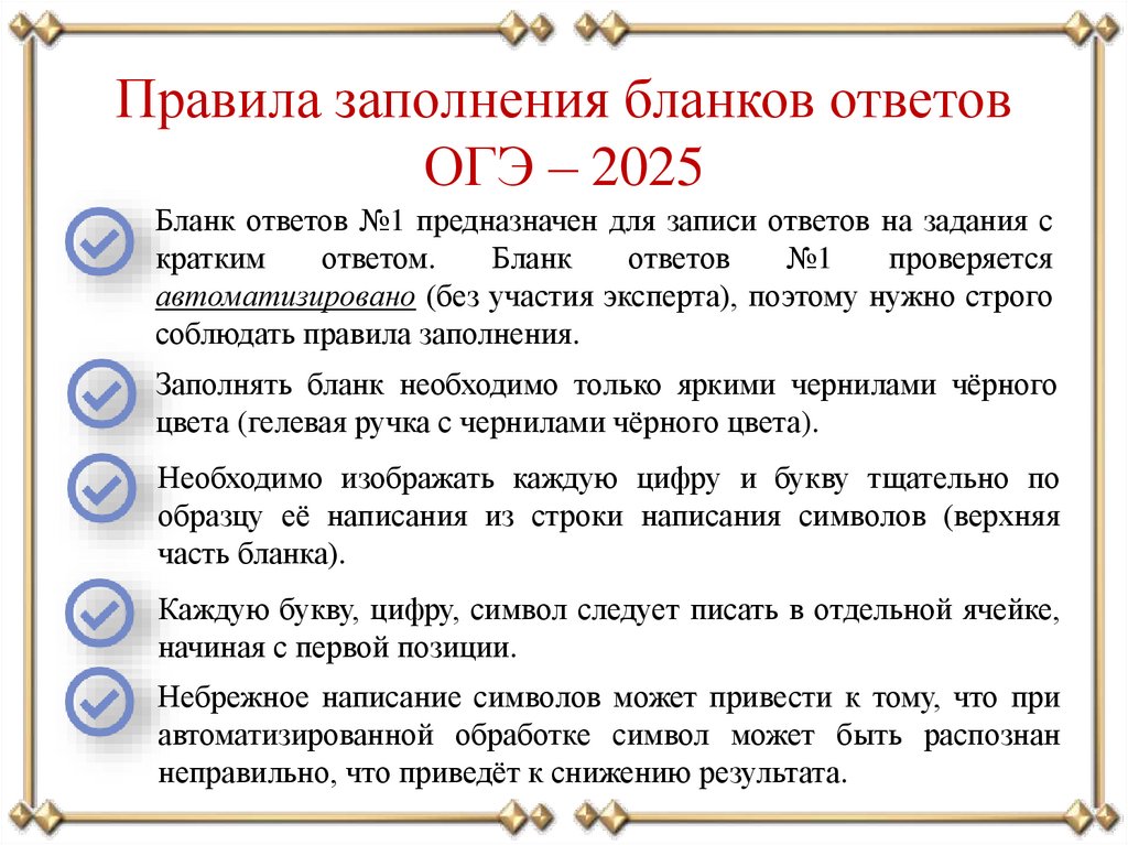 Правила заполнения бланков ответов участников ГИА в форме ОГЭ по русскому языку – 2025