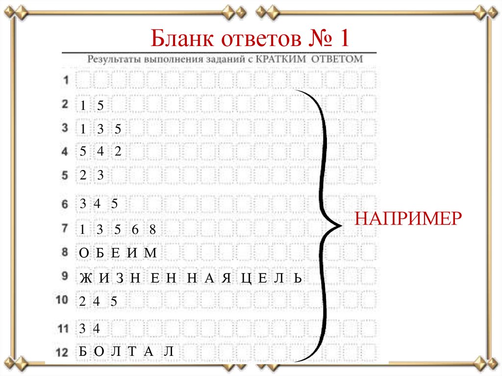 Бланк ответов №1 предназначен для записи ответов на задания с