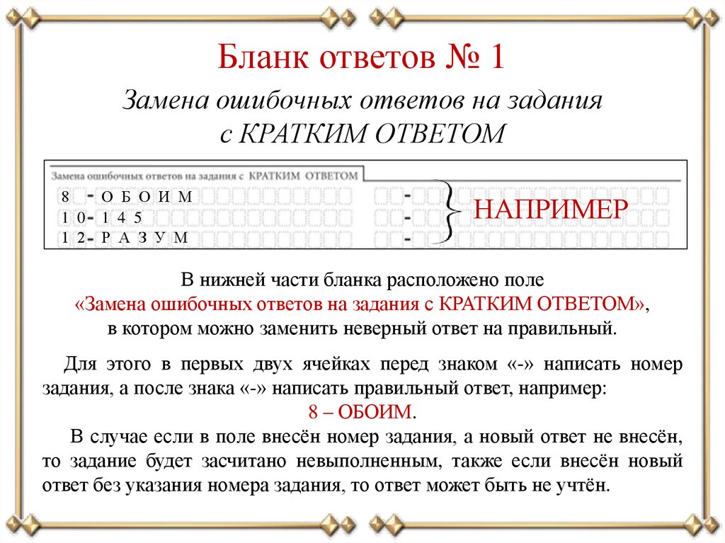 Бланк ответов № 1Замена ошибочных ответов на задания