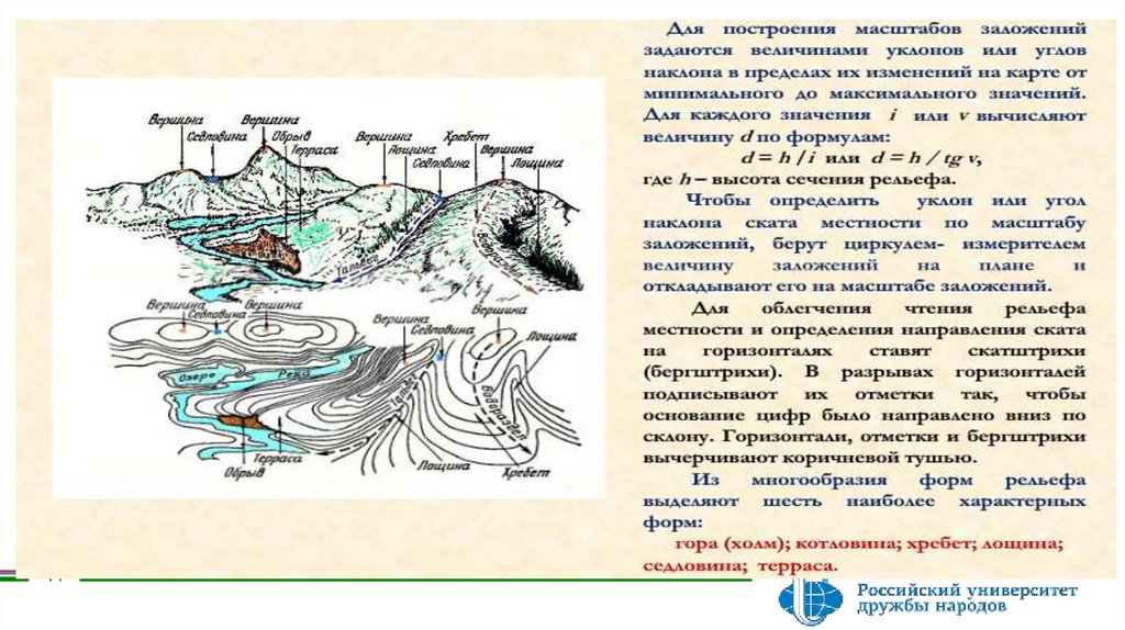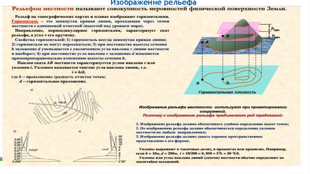 Исходные схемы определения взаимоположения земных точек и линий. Изображение рельефа