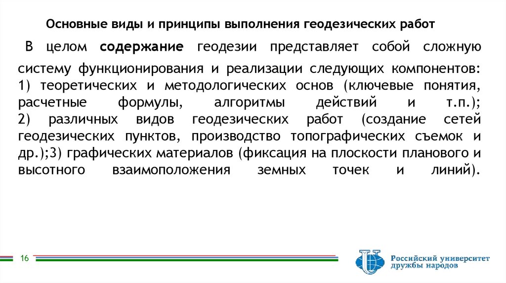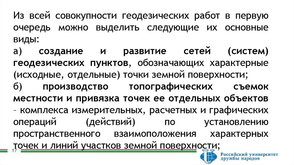Из всей совокупности геодезических работ в первуюочередь можно выделить следующие их основные