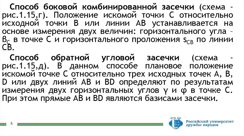 Способ боковой комбинированной засечки (схема рис.1.15,г). Положение искомой точки С относительноисходной точки В или линии АВ устанавливается на