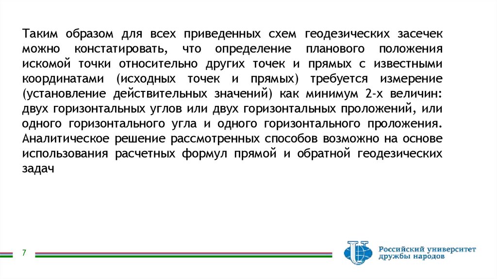 Таким образом для всех приведенных схем геодезических засечекможно констатировать, что определение планового положения