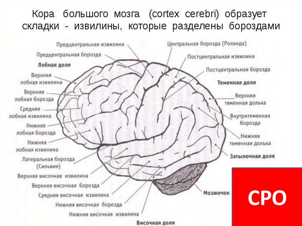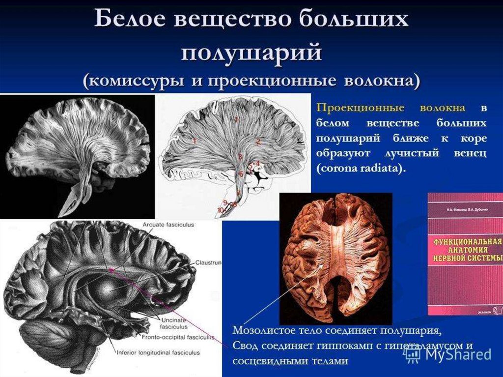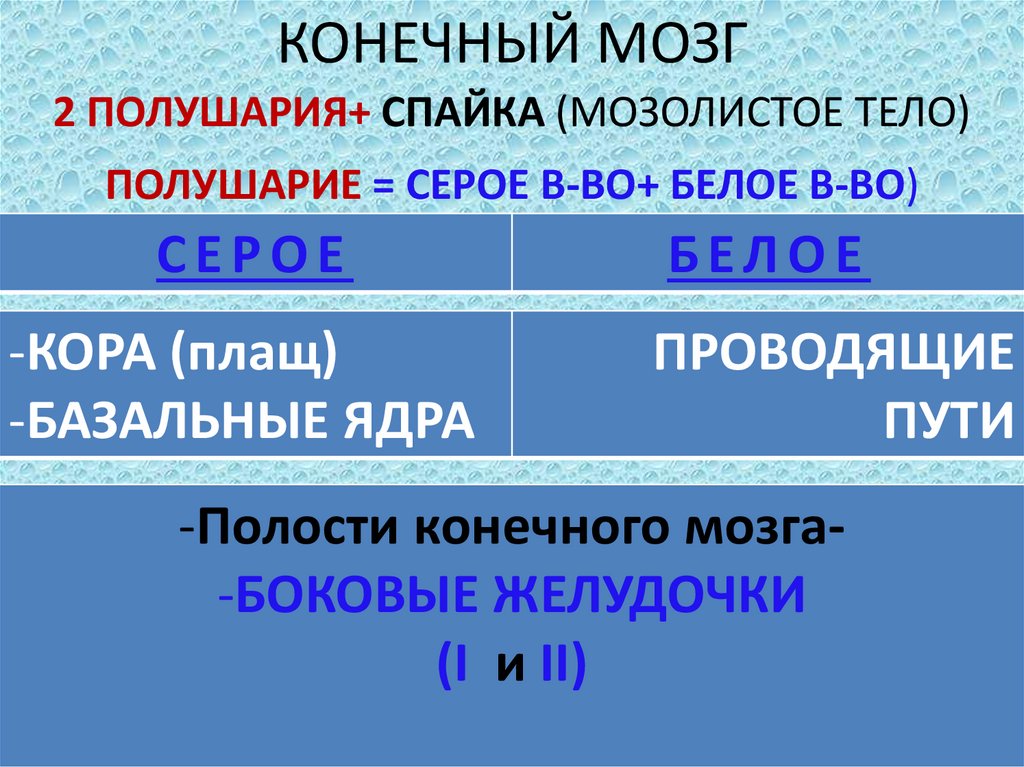 2 ПОЛУШАРИЯ+ СПАЙКА (МОЗОЛИСТОЕ ТЕЛО)ПОЛУШАРИЕ = СЕРОЕ В-ВО+ БЕЛОЕ В-ВО)