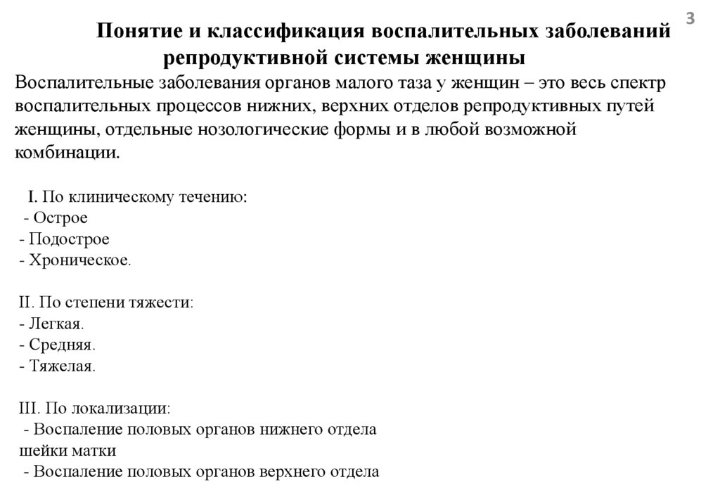 Понятие и классификация воспалительных заболеванийрепродуктивной системы женщины