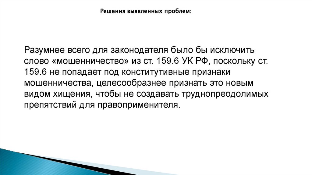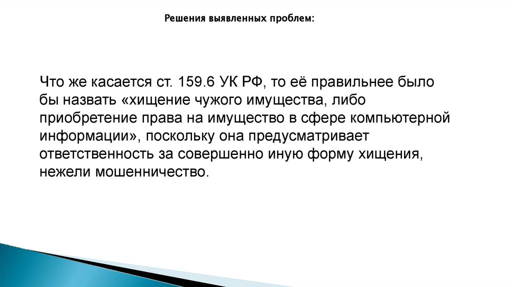 Решения выявленных проблем:Что же касается ст. 159.6 УК РФ, то её правильнее было
