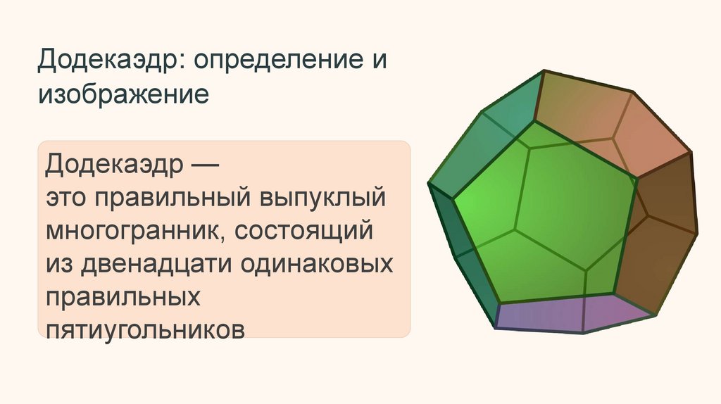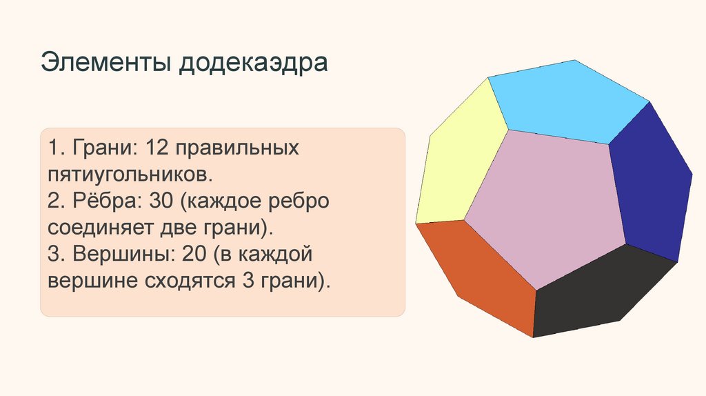 Свойства додекаэдра1. Имеет икосаэдрическую симметрию