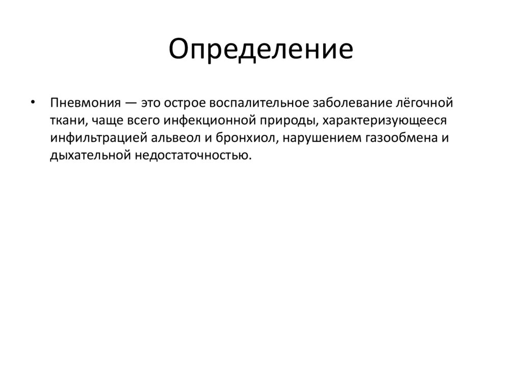 Определение• Пневмония — это острое воспалительное заболевание лёгочной
