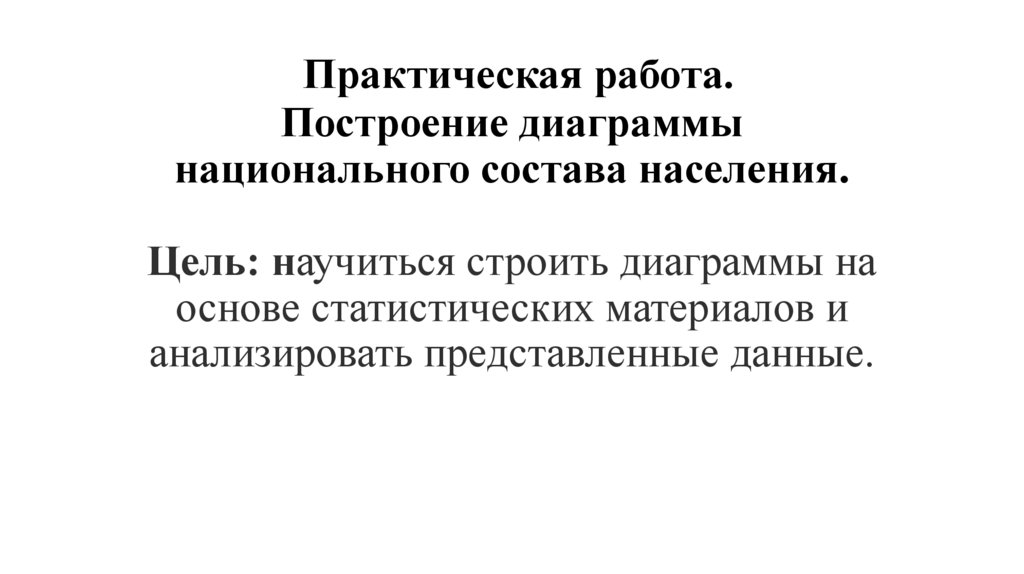1. Практическая работа. Построение диаграммы национального состава населения. Цель: научиться строить диаграммы на основе