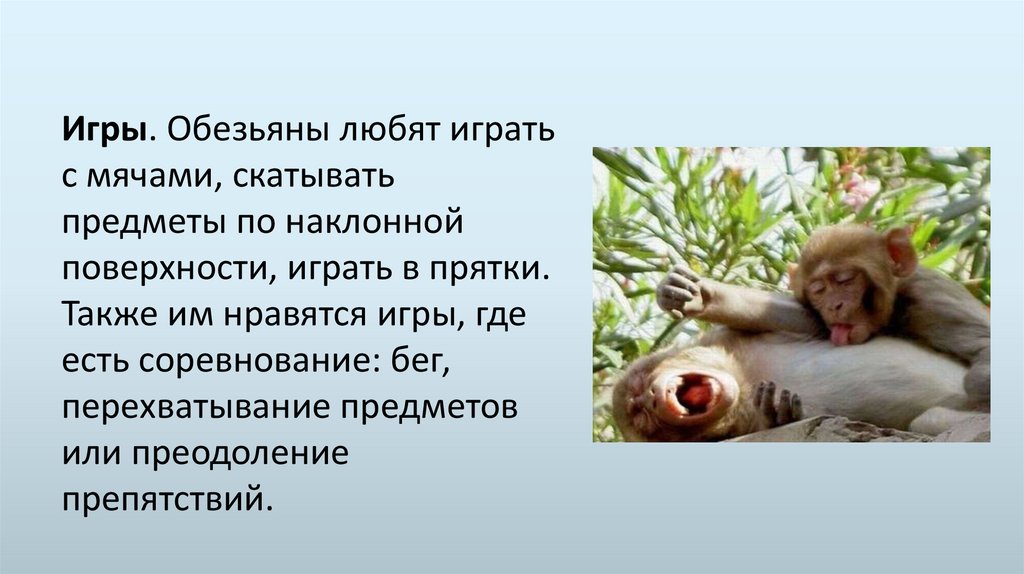 Игры. Обезьяны любят игратьс мячами, скатывать