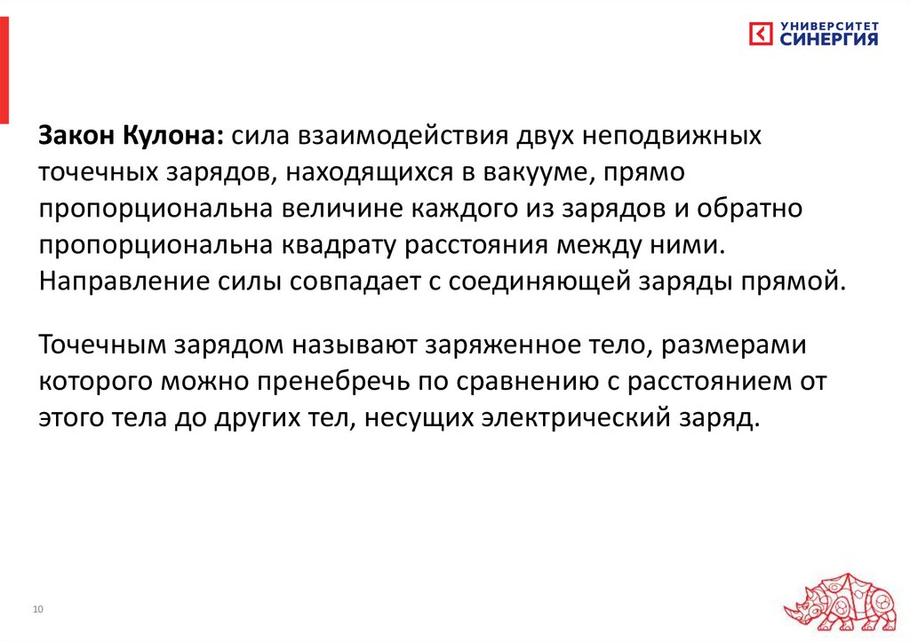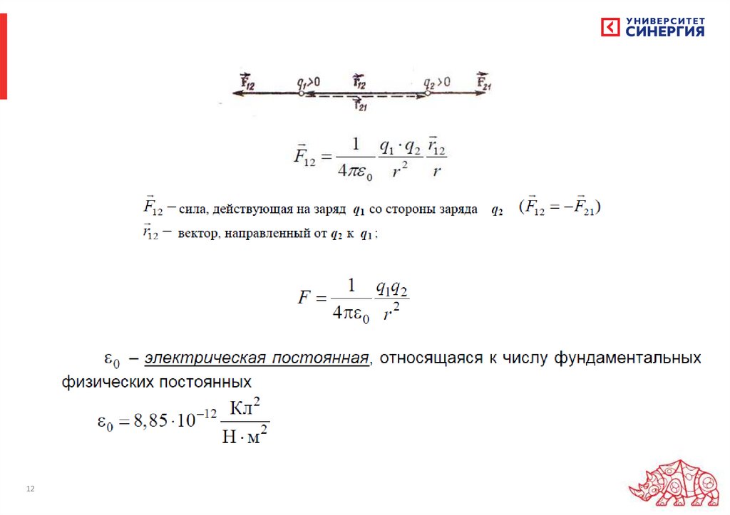 Закон Кулона: сила взаимодействия двух неподвижныхточечных зарядов, находящихся в вакууме, прямо