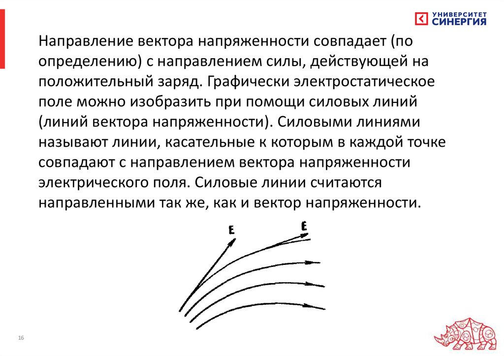 Направление вектора напряженности совпадает (поопределению) с направлением силы, действующей на