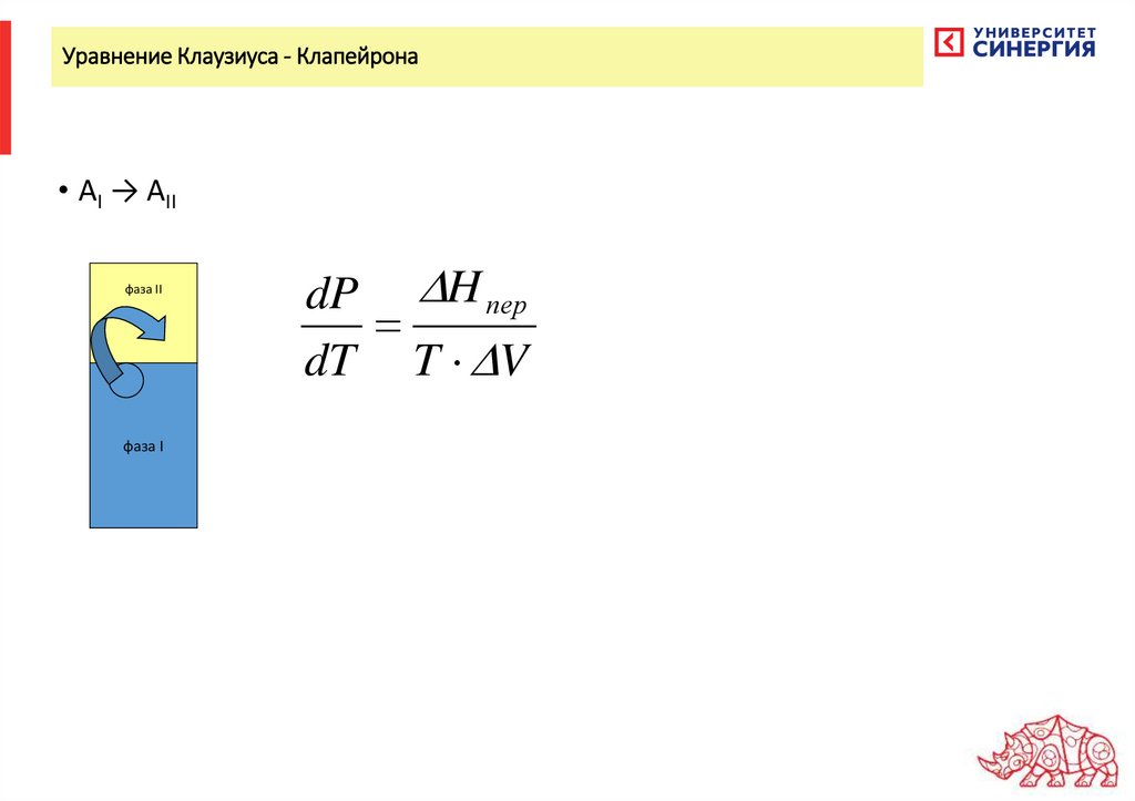Уравнение Клаузиуса - Клапейрона• АI → AII
