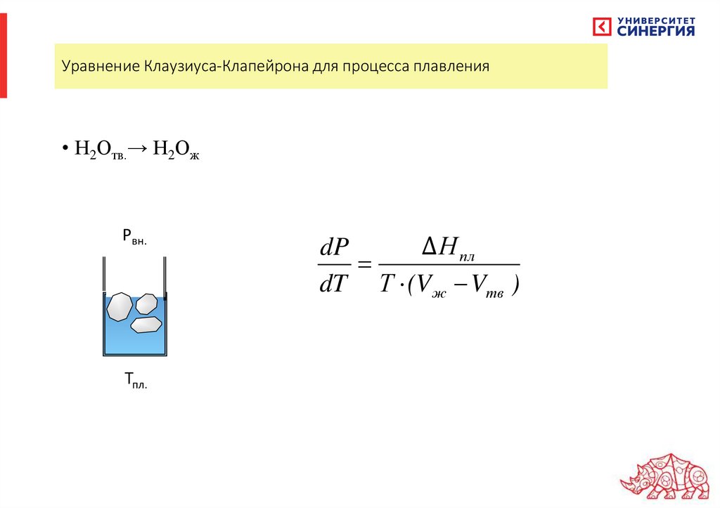 Уравнение Клаузиуса-Клапейрона для процесса плавления• Н2Отв.→ Н2Ож
