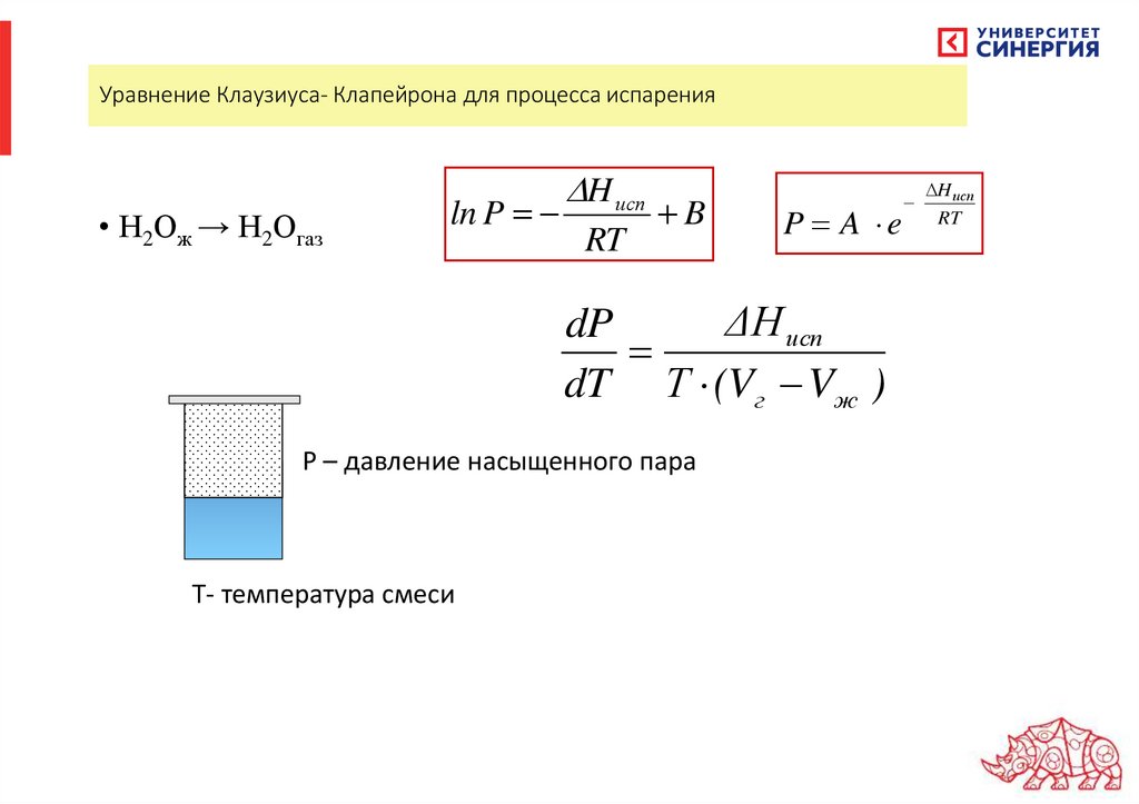 Уравнение Клаузиуса- Клапейрона для процесса испарения• Н2Ож → Н2Огаз