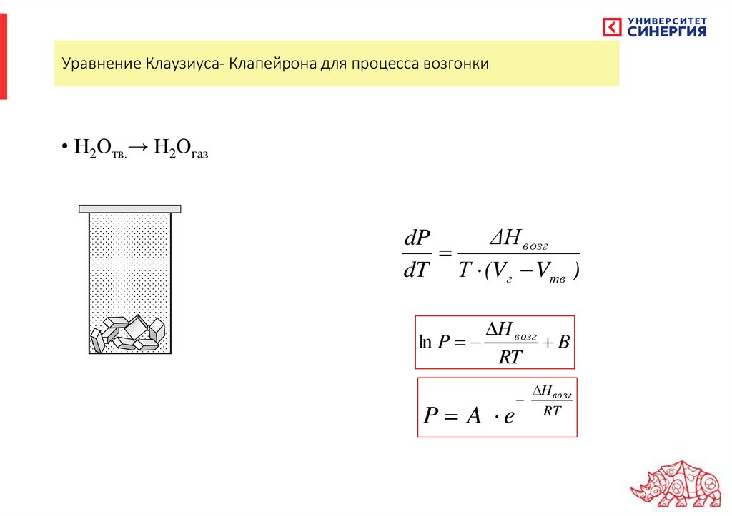 Уравнение Клаузиуса- Клапейрона для процесса возгонки• Н2Отв.→ Н2Огаз