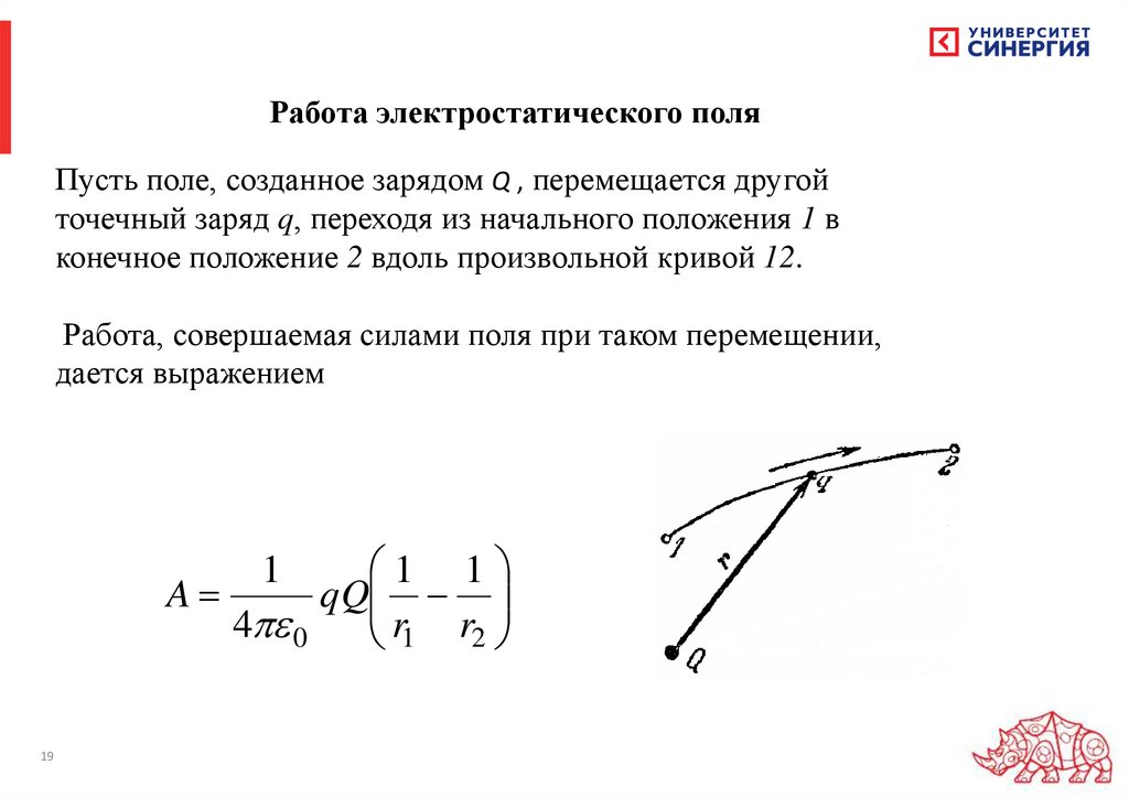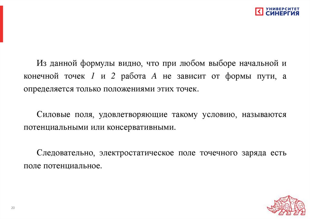 Из данной формулы видно, что при любом выборе начальной иконечной точек 1 и 2 работа A не зависит от формы пути, а