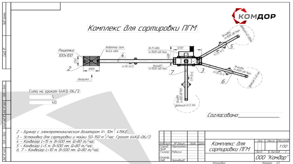 35. Технические характеристики линии для сортировки и смешивания сыпучих материалов 749КД-М: