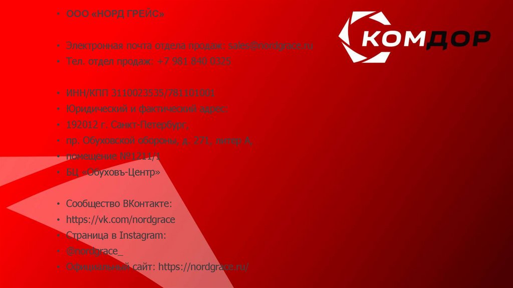 • ООО «НОРД ГРЕЙС»• Электронная почта отдела продаж: sales@nordgrace.ru