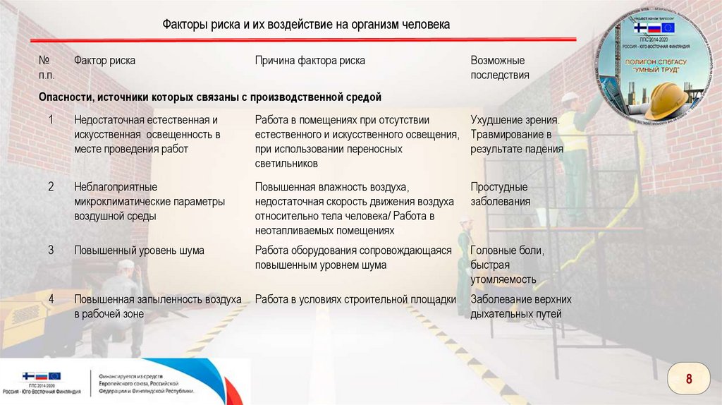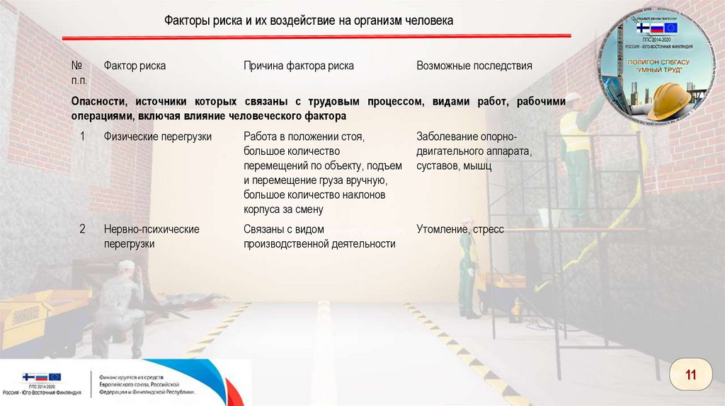 Опасности, источники которых связаны с трудовым процессом, видами работ, рабочими