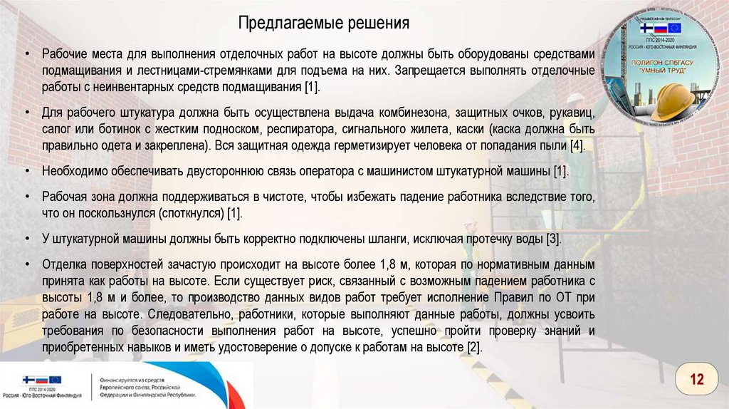 Предлагаемые решения• Рабочие места для выполнения отделочных работ на высоте должны быть оборудованы средствами