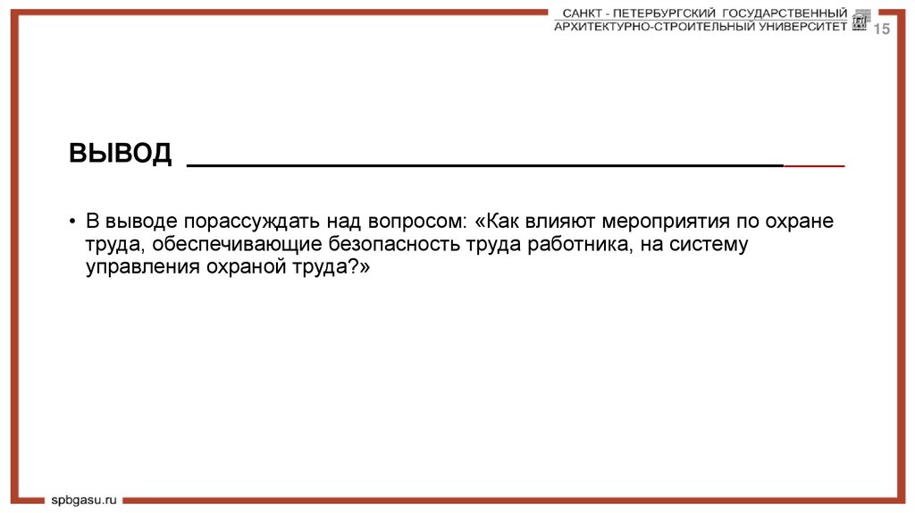 • В выводе порассуждать над вопросом: «Как влияют мероприятия по охране