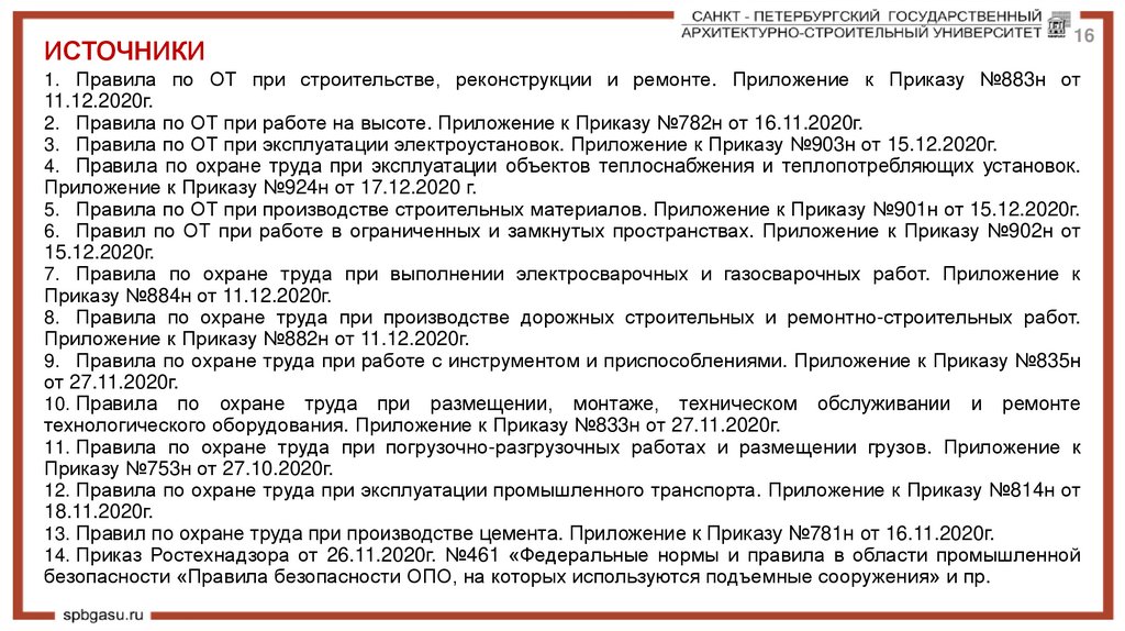 1. Правила по ОТ при строительстве, реконструкции и ремонте. Приложение к Приказу №883н от