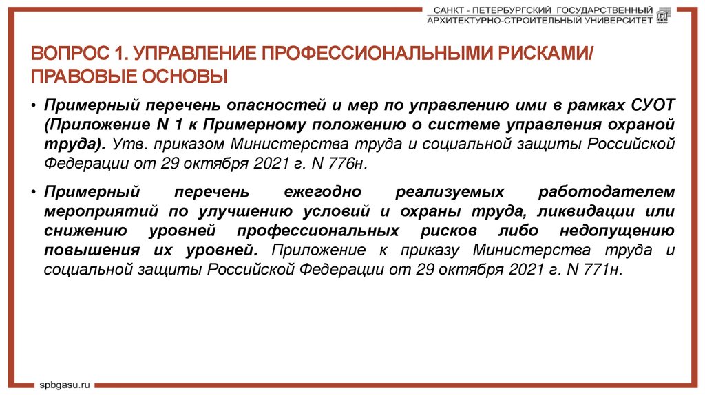 ВОПРОС 1. УПРАВЛЕНИЕ ПРОФЕССИОНАЛЬНЫМИ РИСКАМИ/ПРАВОВЫЕ ОСНОВЫ