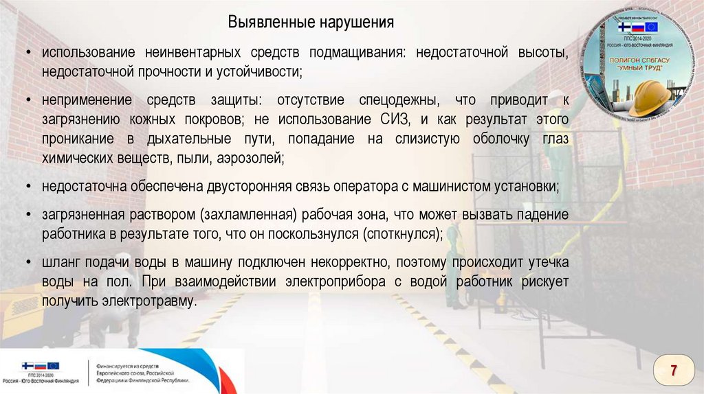 Выявленные нарушения• использование неинвентарных средств подмащивания: недостаточной высоты,