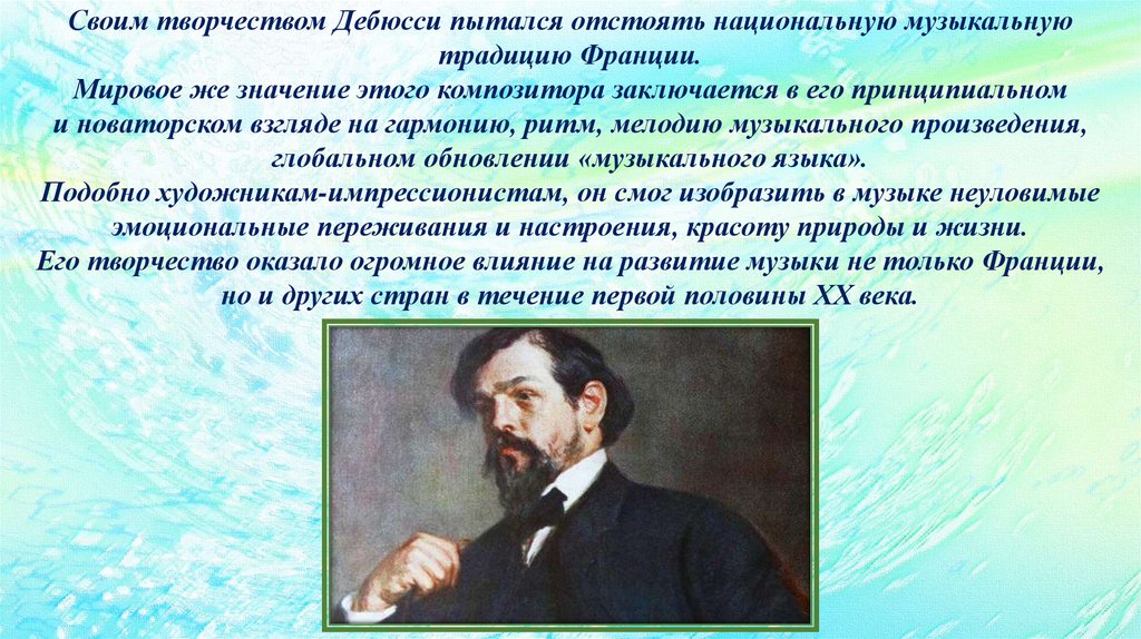 Подобно художникам-импрессионистам, он смог изобразить в музыке неуловимые